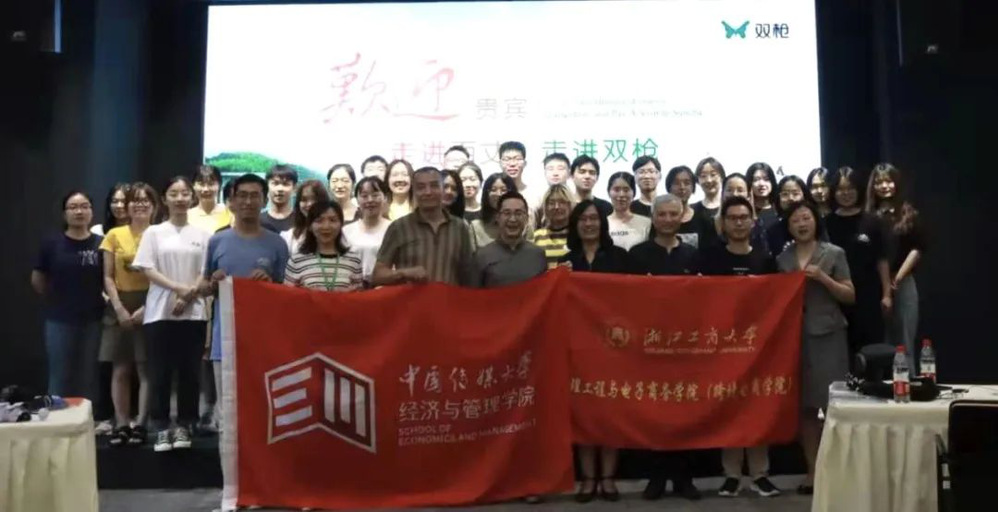 随后,双枪员工中的av解说 校友分享在职体验与心得。他们表示了对企业及其文化氛围的赞可与支持,并期待未来同学们的加入。为感谢校友们的分享,av解说 社会合作办(校友办)张娟老师和学院许金根老师为校友们颁发浙商大定制纪念品。