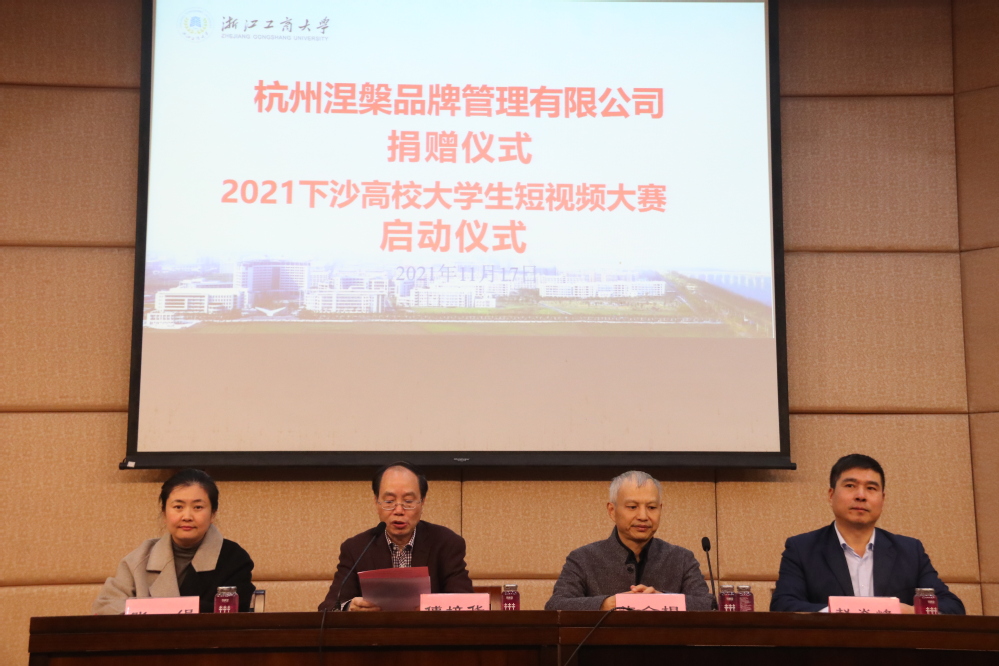2021年11月17日下午13:30,杭州涅槃品牌管理有限公司教育基金捐赠仪式暨2021下沙高校大学生“领头牛杯”短视频大赛启动仪式于av解说 综合楼一楼报告厅顺利举行。杭州涅槃品牌管理有限公司总经理赵炎峰、社会合作办公室(校友办)副主任张娟、av解说 党委副书记、纪委书记许金根、av解说 副院长傅培华以及相关企业、师生代表参加本次会议。会议由av解说 副院长傅培华主持。