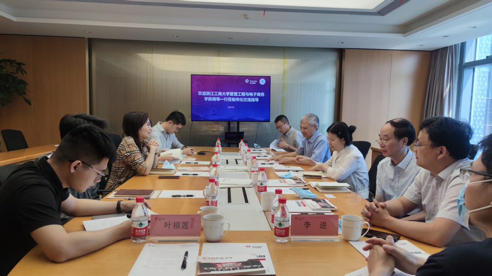 座谈会上,传化智联党委书记、副总裁沈亚对王海燕院长一行到访表示欢迎,她介绍了传化智联的企业发展、人才培养、核心主业等情况,希望双方开展更加深入、务实、长远的合作,实现优势互补、合作共赢,推动双方合作精准化、持续化和系统化。