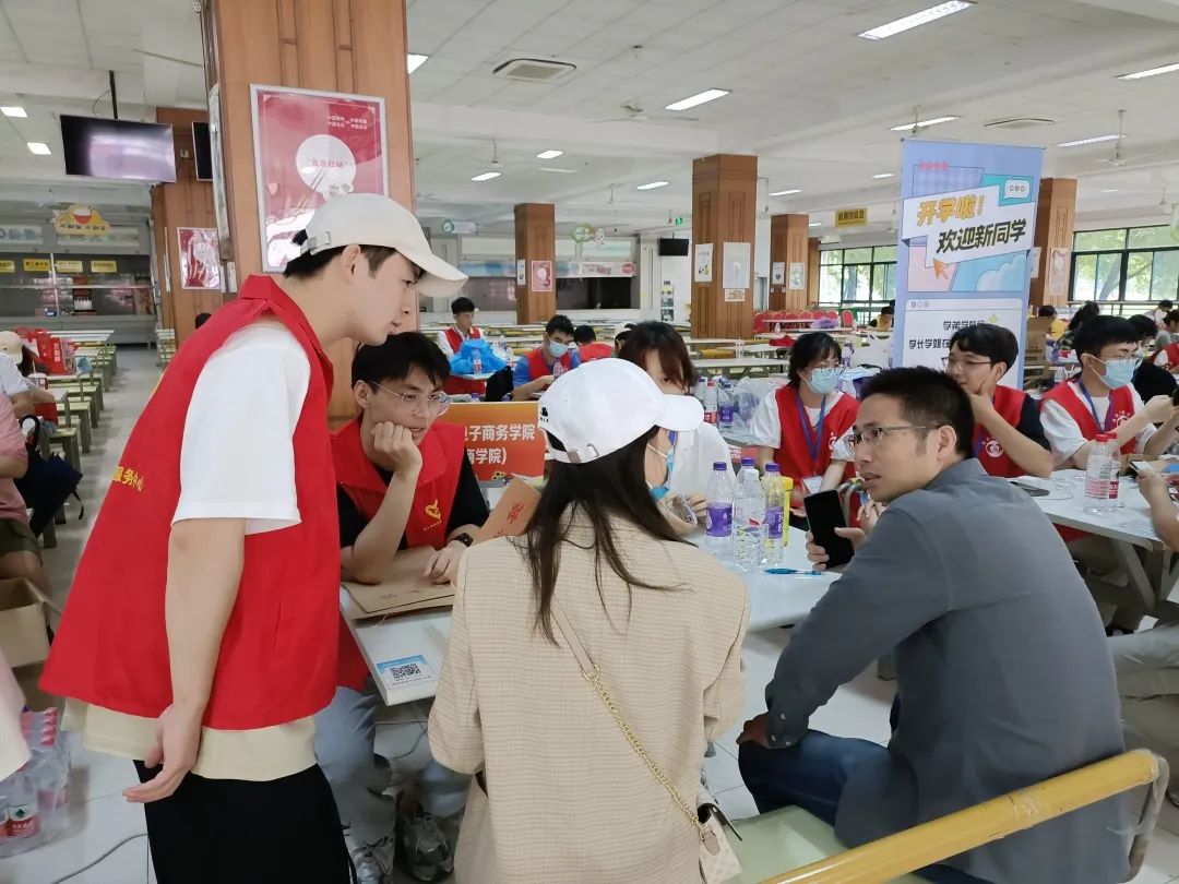 志愿者们的身影分布在校门、报到点等区域,第一时间为新生们答疑解惑,提供服务。