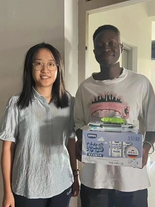 慰问现场,国际生们开心地收下礼物,踊跃分享他们的假期规划,并对学院和老师、班助们表达了真挚的感谢。其中研三的硕士生Tatenda表示,国庆假期结束后他马上就要在10月9日进行毕业论文预答辩,虽然已经写好了论文,但他会利用国庆假期来进行更充分的准备,争取预答辩取得一个满意的结果。