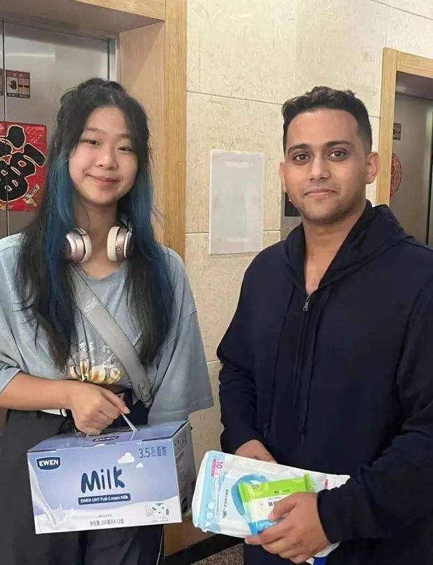 In order to ensure the 22 international students have a safe and happy National Day holiday, on the afternoon of September 30th, SME international student counselors Yu Rongfang (Rosa) and Ren Yi (Ronnie), and two class assistants Cao Xiangrui (Andrew) and Zheng Jinglin (Jacelynn), went to the international student dormitory in Jinshagang to pay a visit.
