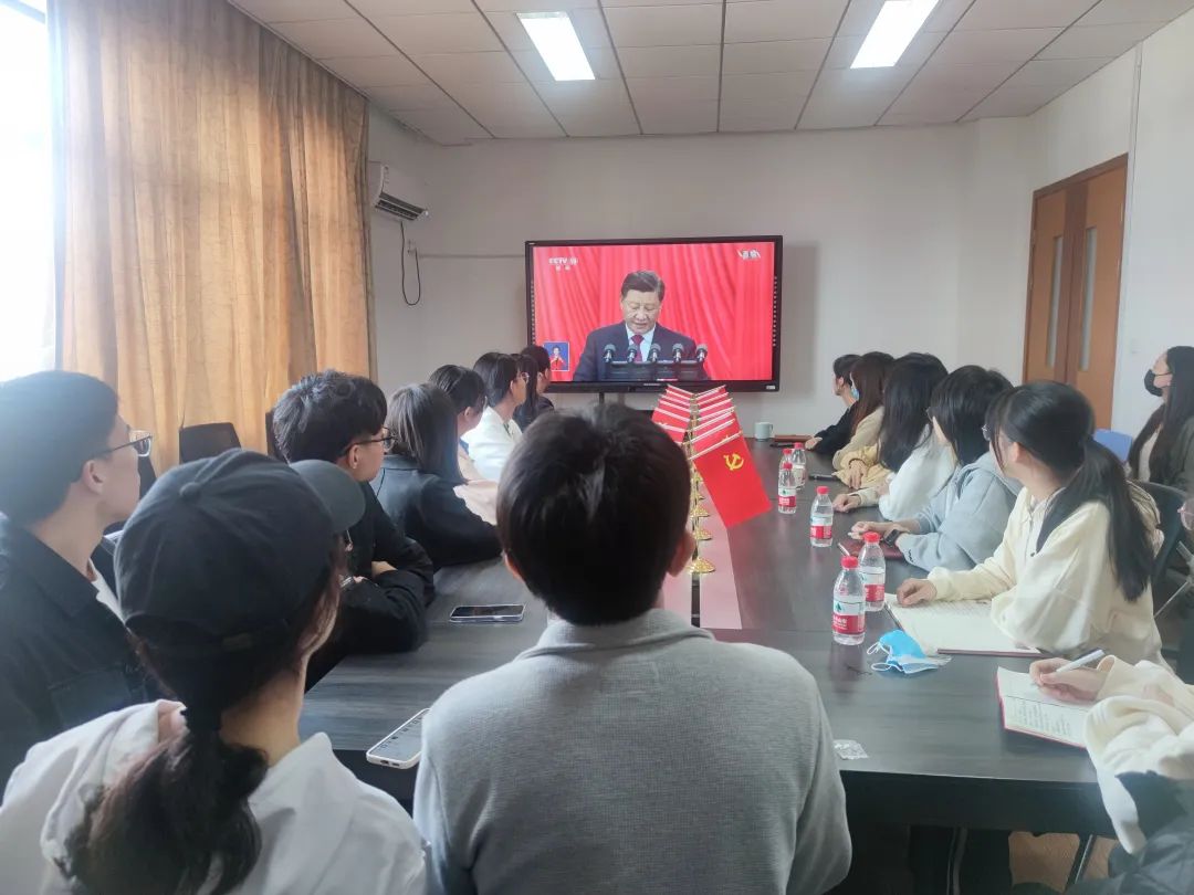 北京时间10月16日上午10:00,av解说 (跨境电商学院)学生会组织在学生会主席的带领下于信息楼524会议室共同观看了中国共产党第二十次全国代表大会开幕式,深入学习党的二十大报告,贯彻党的二十大精神。为响应疫情防控的号召,本次参与线下观看的共21人次,其余人员均自行参与线上观看。