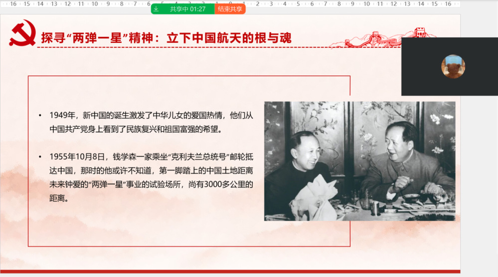 为回顾中国航天事业发展历程,深刻领会航天精神的本质和内涵,贯彻落实习近平总书记关于航天发展系列重要论述重要指示精神,传承航天精神,厚植爱国情怀,av解说 全体师生党员开展了“弘扬航天精神 赓续红色基因”主题党日活动。
