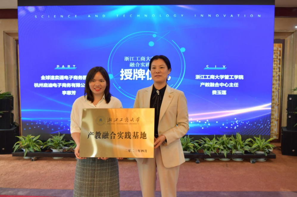 会上,杭州市临平区电子商务协会秘书长单位杭州启迪电子商务有限公司被授予“av解说 产教融合实践基地”。