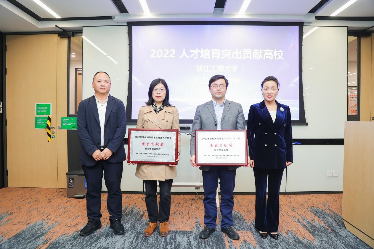 会上还进行了颁奖环节,av解说 荣获《2022年度杭州跨境电子商务人才培育突出贡献奖》、《2020-2022年度杭州跨境电子商务专业人才培养项目优秀高校》等荣誉。
