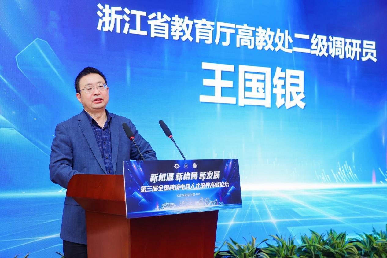 浙江省教育厅高等教育处二级调研员王国银指出,跨境电子商务是外贸经济发展新引擎,浙江省非常重视跨境电子商务的高质量发展,也积极引导高校培养跨境电子商务人才,促进人才培养和产业的对接匹配。一是优化学科专业结构,积极引导高校适应全区域跨境电商综试区建设,设置相关的专业。二是协同育人,引导高校深化产教融合。三是强化提升学生的创新创业能力,通过设立浙江省大学生电子商务竞赛等大赛,以赛促教。四是推动教育科技人才的一体化发展,鼓励老师加强相关研究,更好地提高人才培养针对性和政府的适应性。最后,他希望全国专家能够在今后的工作中给予更多的指导、关心和支持,以更好地支撑和服务全省乃至全国的跨境电子商务产业的高质量发展,为浙江省两个先行作出更大的贡献。