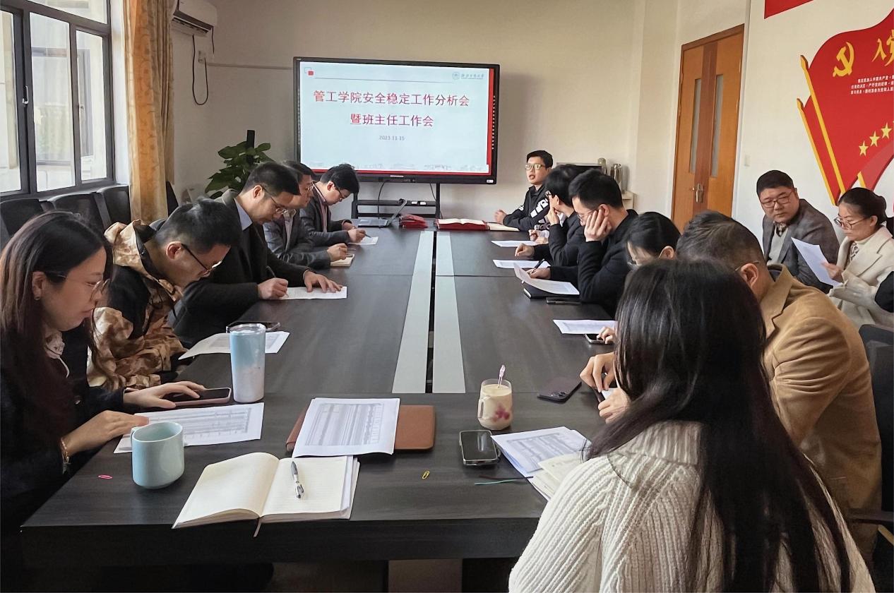 学院副书记林瑜茂传达了学校安全稳定工作会议精神及学校近期关于安全稳定工作的要求。他结合近期的几件突发事件,全面分析了学院潜在安全隐患,并且从意识形态、学业困难、寝室矛盾、交通安全等方面做了分析和提示。他要求班主任和辅导员及时沟通,多开展谈心谈话,着力解决学生急难愁盼的问题,做到安全隐患无死角。