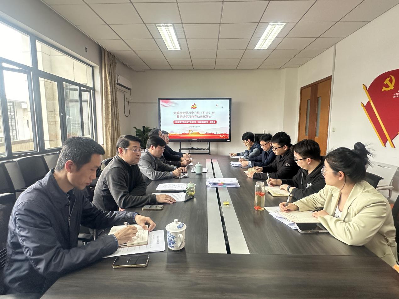 召开党委理论学习中心组(扩大)会暨党纪学习教育动员部署会,传达学习贯彻习近平总书记关于党纪学习教育的重要讲话和重要指示精神,认真贯彻落实中央党的建设工作领导小组会议和省委常委会会议暨省委党的建设工作领导小组会议、省级层面党纪学习教育专班工作会议、省教育厅党组会议和学校有关会议精神和工作要求,研究部署学院党纪学习教育工作。学院党委书记肖亮作动员部署讲话。学院领导班子、全体党支部书记参加会议。