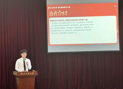 吴同学向大家介绍了自己三个时期的经历。作为班级文体委员、校篮球协会副会长、新生班主任助理,以及中国共产党党员,在学生工作中展现了领导力和奉献精神。社会实践中,以摄影记者、签约摄影师和直播电商运营的身份积累了专业经验。在校宣传工作中,作为“追光工厂”团队的骨干成员,参与创作了获得国家级荣誉的微电影《婺光十色》。吴同学成功做到了用镜头记录世界,用行动践行理论宣传。