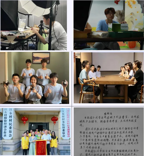 班级同学运用专业知识,亲身实践下乡带动乡村振兴。和枣粮先生公司进行深度合作,前往山东乐陵,通过在课堂中学习的生产运营知识,以及学院特色电商直播能力带动当地枣类产品的售卖,促进当地经济发展带来了12万+的销售额,推动农户收益超40万元;同学所在团队连续多年扎根江东村,共开展了30余次各类心理实践与团辅活动,覆盖了600余名村民,期间,“心UP”团队获得了各类媒体报道共计50余篇;同学在浙江省杭州市萧山区梅林村——“千万工程”发源地,进行AI助力乡村振兴。