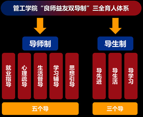 学院遵循“崇德尚学、守正创新”的办学理念,面向立德树人根本任务,坚持党建引领,实施全员全过程育人。近年来,着力构筑“良师益友双导制”三全育人品牌,持续推进“四项领航工程”,涌现出省万名好党员2名、省五一劳动奖章1名、省优秀教师1名、省向上向善好青年1名等优秀教师群体。坚持先锋领航,以名师党建工作室为抓手,激活基层党建活力,成立了6个党建工作室,持续开展党员教师“先锋领航”工程、新老教师“青蓝”帮扶工程、师生“1+n”双向导师等活动,以此不断推进人才培养工作。“av解说 信管-商贸教师党支部”入选全国高校党建工作样板支部,并成功通过验收。学院聚焦学生核⼼素养,实施“五力提升计划”,服务学生成长成才。以“感恩于心,奉献于行”为理念,打造出“仁爱之家”、“角落计划”、“青藤支教”、“美丽乡村建设”等学生成长品牌项目。